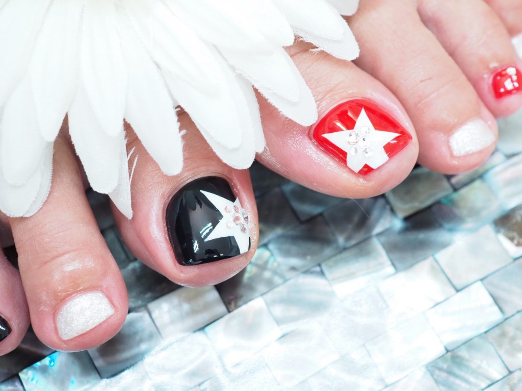明るいレッドはお足元がキレイに見えるのでフットに最適です!