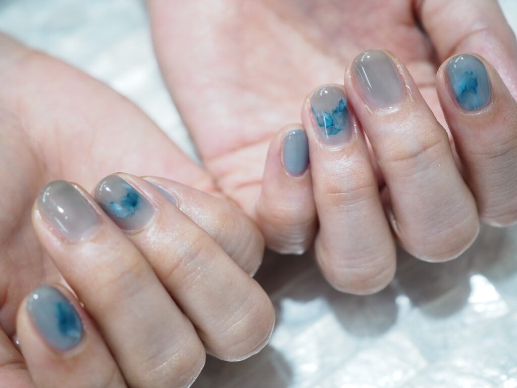 クリアなブルーにインクを垂らした海のようなデザイン♪